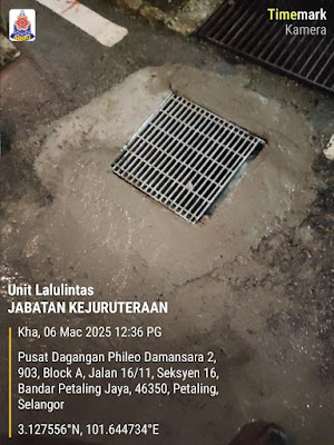 I also want to take this opportunity to express my deepest appreciation to the MBPJ workers who worked hard this morning to fix a manhole cover that was damaged and dangerous to motorcycles.